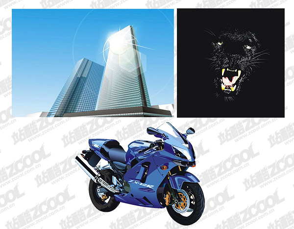 Location: Home > Vector > Other Vector > Tall buildings, Panthers and motorcycles vector material