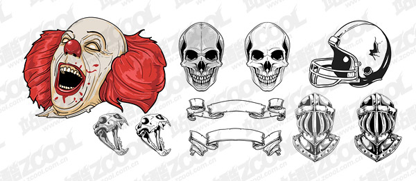 eps format, ai format, with jpg preview, keyword: vector skeletons, helmets, skull, clowns, Continental material, vector material