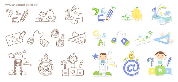 ai formats, including jpg preview, keyword: Vector icons, cute, pencil, germination, chicken, first, the questions and answers, vivid tube, ruler, characters, symbols mail, email, vector material