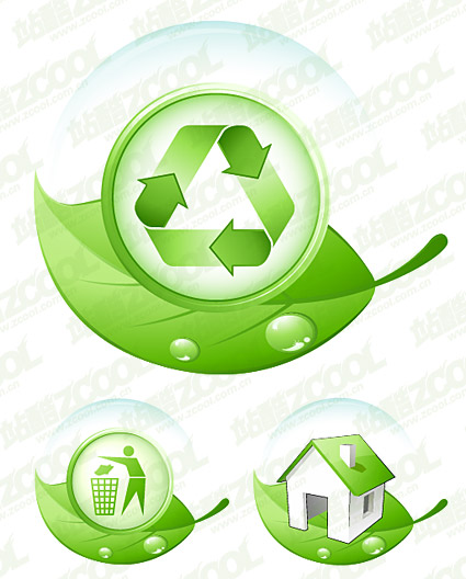 eps format, including jpg preview, keyword: Vector environmental icons, leaves, water, house, logo, vector material