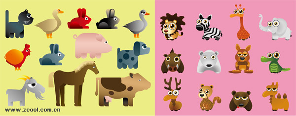 eps format, including jpg preview, keyword: Vector animals, dog, duck, rabbit, chicken, sheep, horse, pigs, lions, zebras, comedy, giraffes, elephants, bears, kangaroos, dragon, camels, cats , vector material