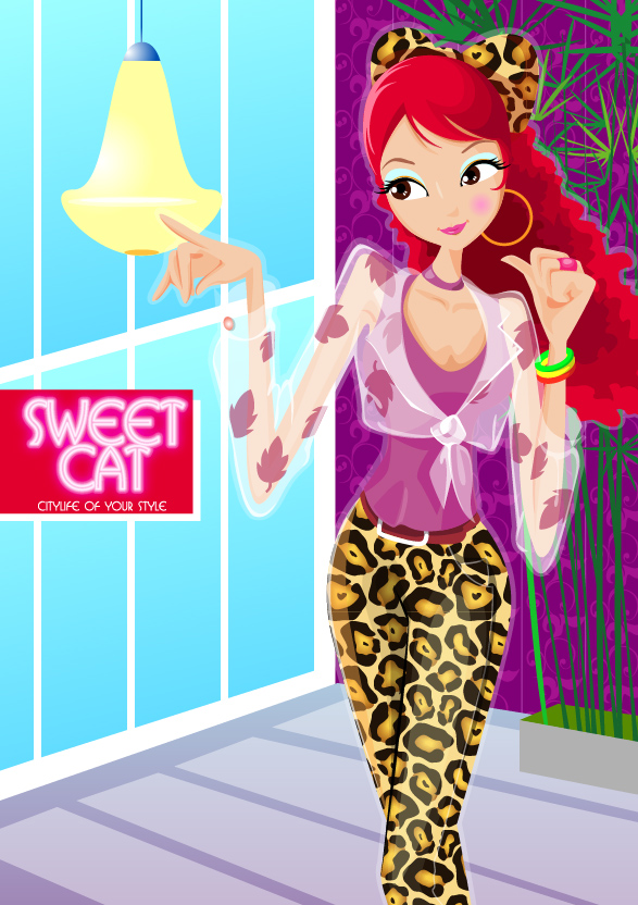 The fashion to wear leopard installed Vector material girls