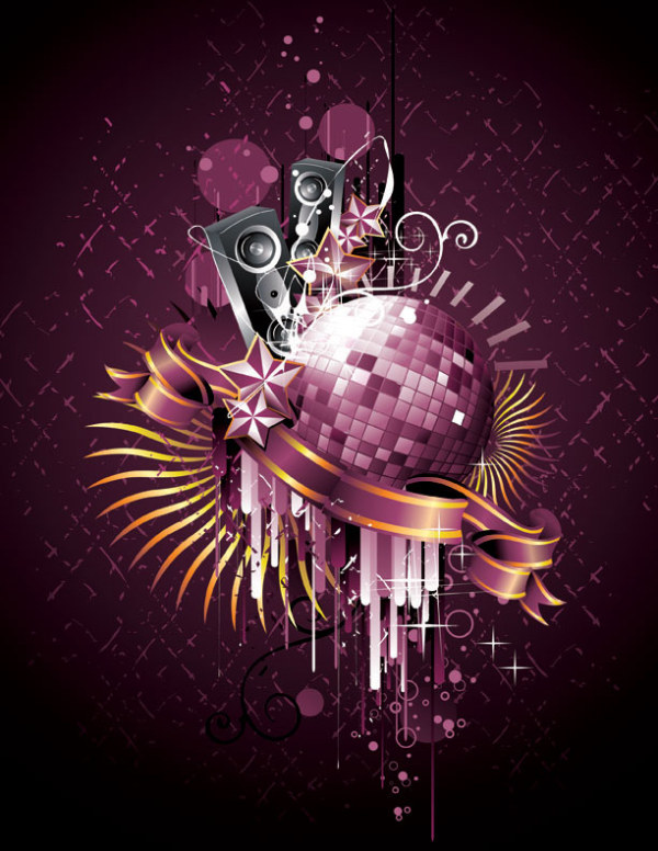 Keywords disco disco nightclub dance music, the trend of crystal ribbon speaker design trend of retro elements in stars, vector material
